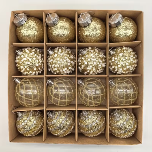Includes 16 uniformly sized 2.36-inch (60mm) Christmas balls in a luxurious champagne finish—ideal for small, medium, and large Christmas trees.