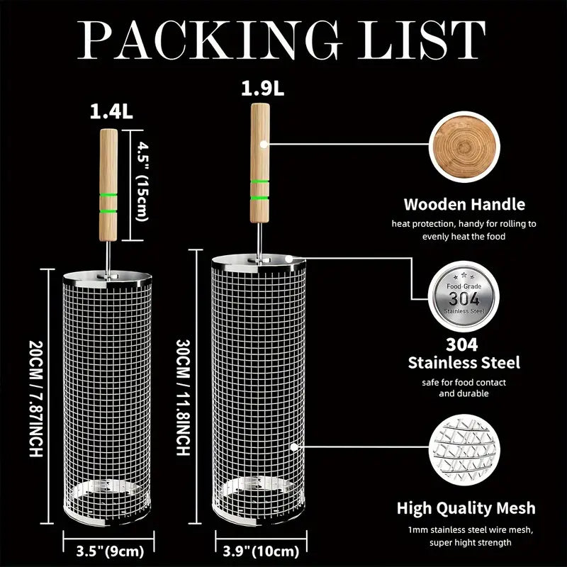 Grill veggies, shrimp, and more with ease using this upgraded nesting grill basket. Made from durable 304 stainless steel, it’s perfect for outdoor BBQs, camping, and picnics. A great gift for men, dads, and husbands who love grilling